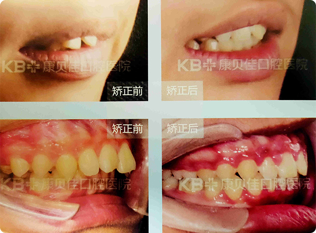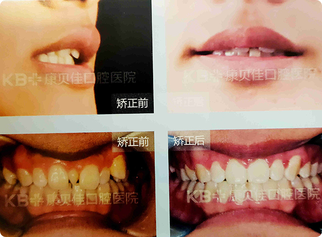 拔除多生牙,关缝,金属托槽矫正结束后患者感到很满意。