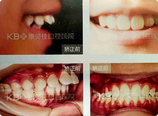 通过金属托槽矫正,牵引牙列到正常位置。患者非常开心,对矫正效果非常满意。