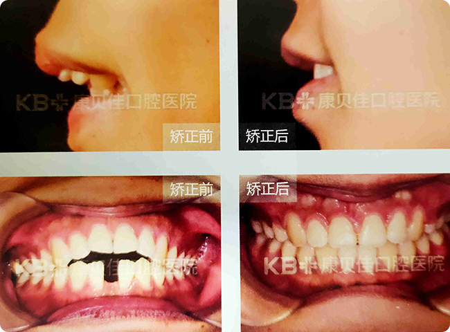 拔除多生牙,通过金属托槽矫正,牵引牙列到正常位置。患者非常开心,对矫正效果非常满意。