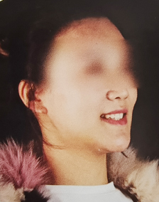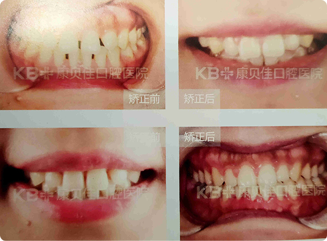 通过陶瓷托槽矫正,关闭下颌缝隙,调颌,对矫正效果满意。