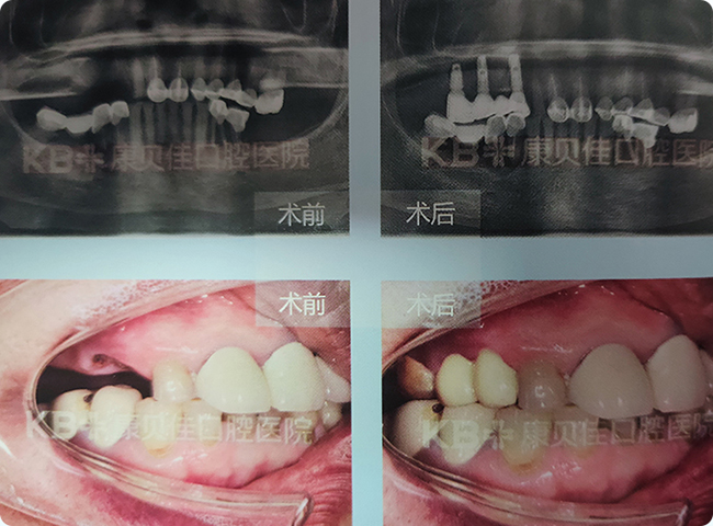 患者年纪较大,口腔条件不好,牙槽骨流失严重。考虑到老人家88岁高龄,耐受力差,且骨织愈合速度慢,经不起时间长、创口过大的种牙手术。康贝佳口腔种植科医生为其定制了利用牙槽骨相对好的区域微创植入种植体的方案。当天戴上牙后能吃东西了,老人开心不已。