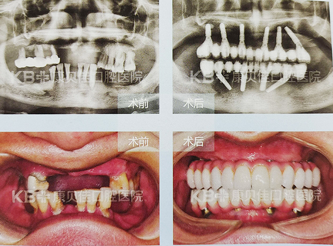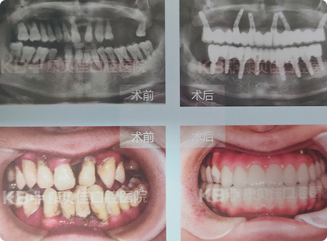 几年前牙齿开始松动、脱落,经过对比选择康贝佳做了全口种植。上半口采用种植6颗修复半口技术,下半口采用种植4颗修复半口技术。
