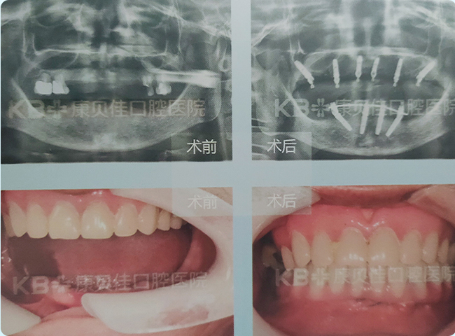 全口多颗牙缺失30余年,多颗牙做过根管治疗。后牙区吃饭用不上力。找到任博士要求种植。 任博士通过即拔即种、缺多种少的方式,恢复了患者上下后牙区的咬合关系,重建了一口好牙。